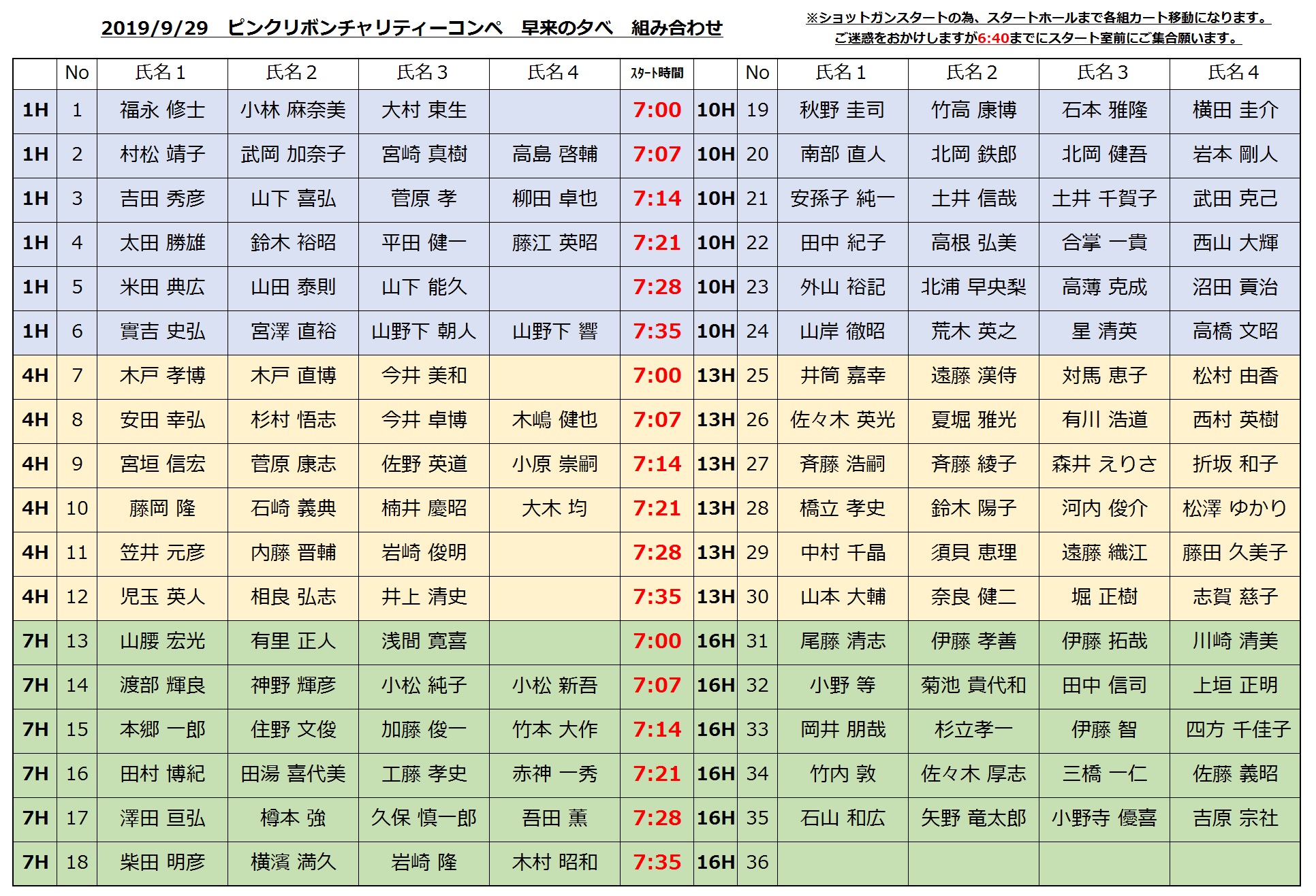 ショットガンスタートの為、集合はクラブハウス前に [6:40] になります。