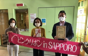 本日、皆様から寄付いただきました220,500円全額を「ピンクリボンin SAPPOO」さまへ寄贈させていただきました。